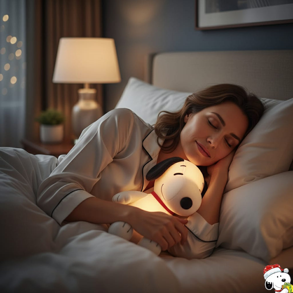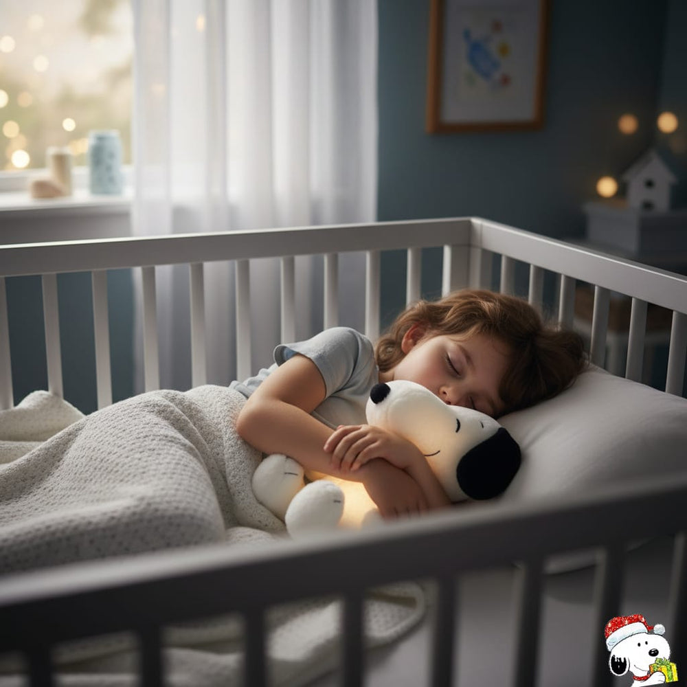 A warm, comforting light is integrated into Snoopy's belly, perfect for reassuring your child in the dark without disturbing their sleep.